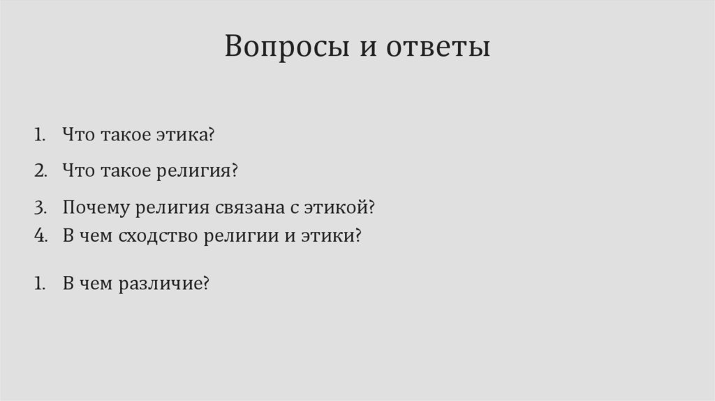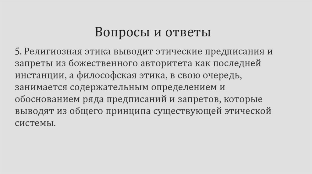 Вопросы и ответы5. Религиозная этика выводит этические предписания и