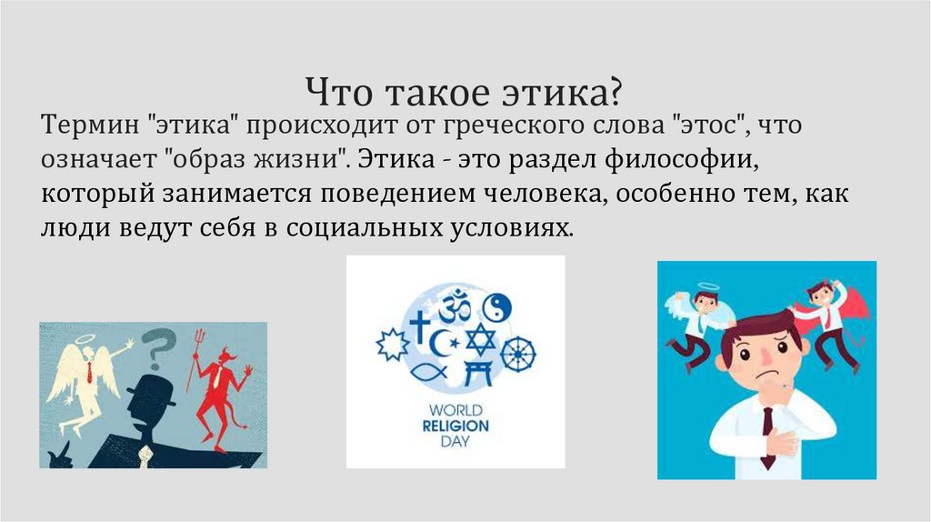 Что такое этика?Термин "этика" происходит от греческого слова "этос", что