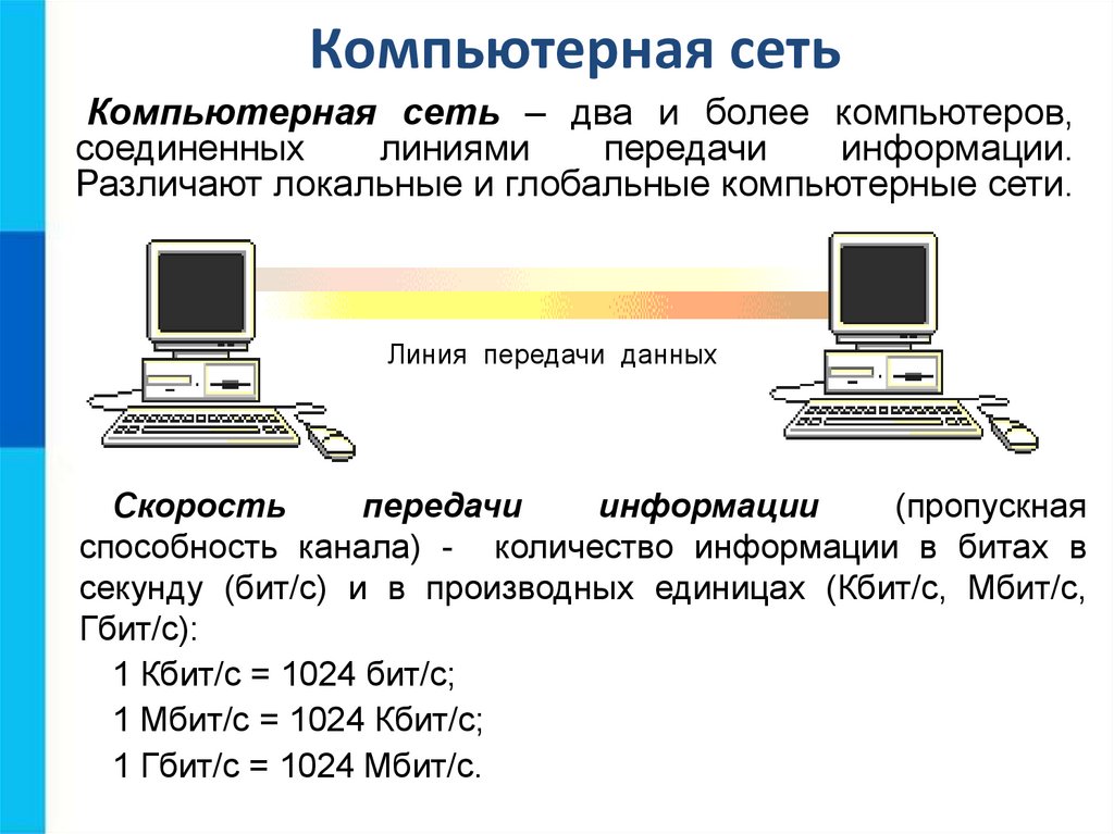 Компьютерная сетьКомпьютерная сеть – два и более компьютеров,