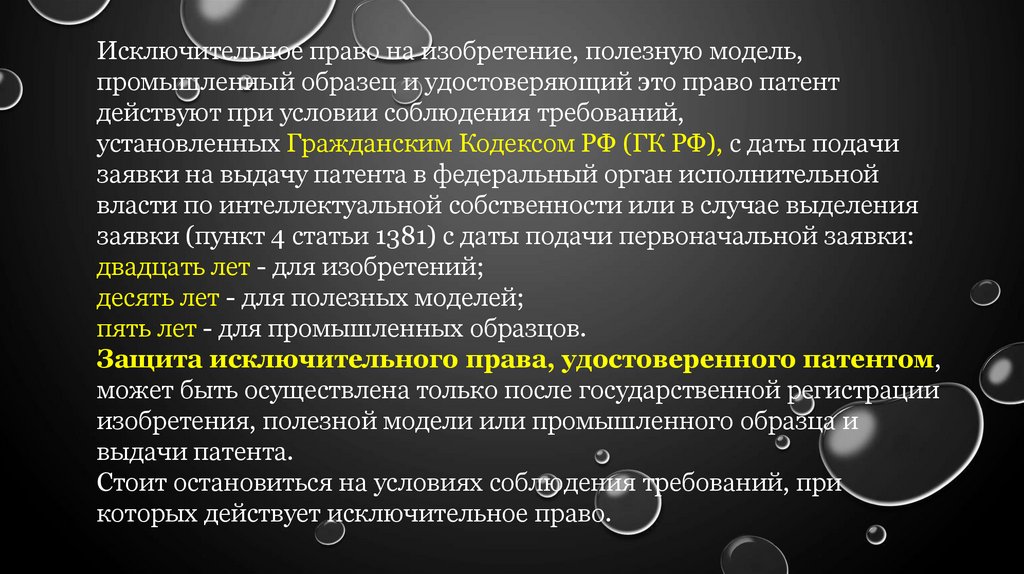 Понятие, содержание и срок действия исключительного права на произведение. Сроки действия исключительных прав на изобретение