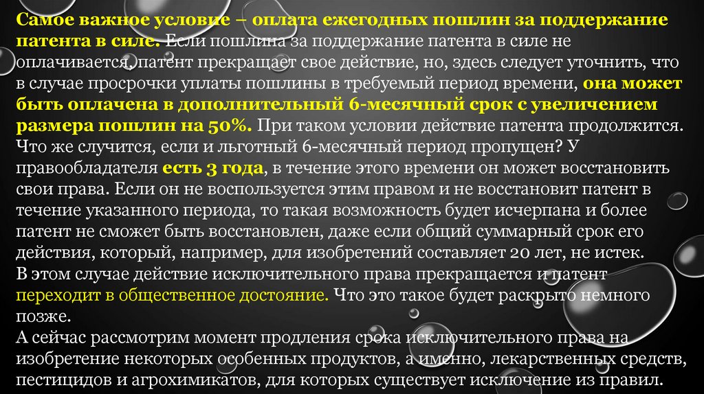 Самое важное условие – оплата ежегодных пошлин за поддержаниепатента в силе. Если пошлина за поддержание патента в силе не