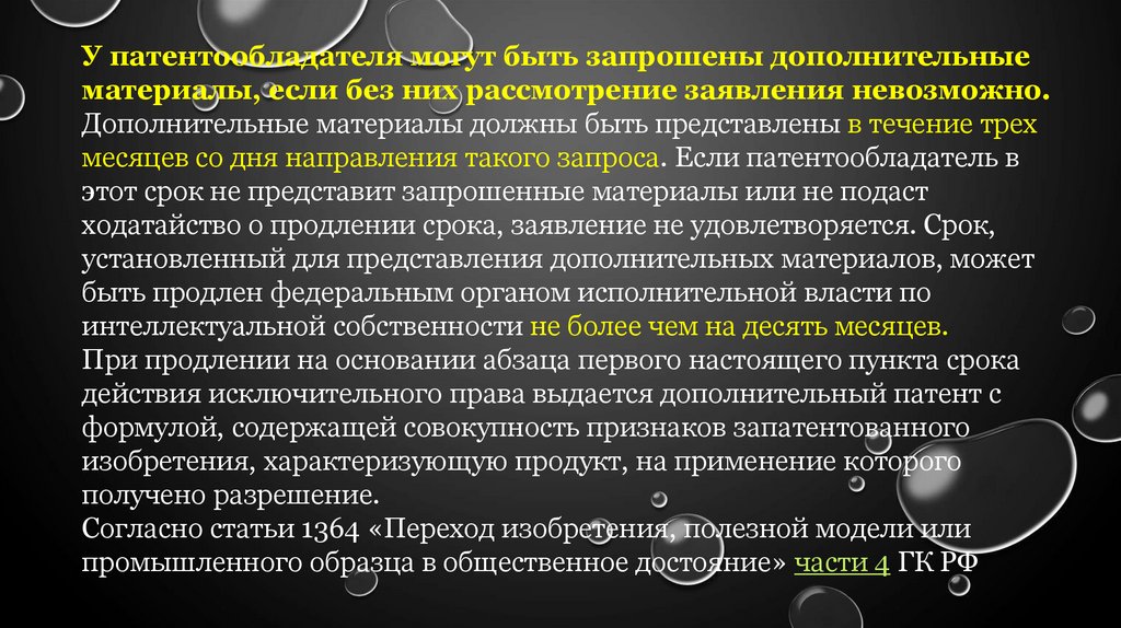 У патентообладателя могут быть запрошены дополнительныематериалы, если без них рассмотрение заявления невозможно.