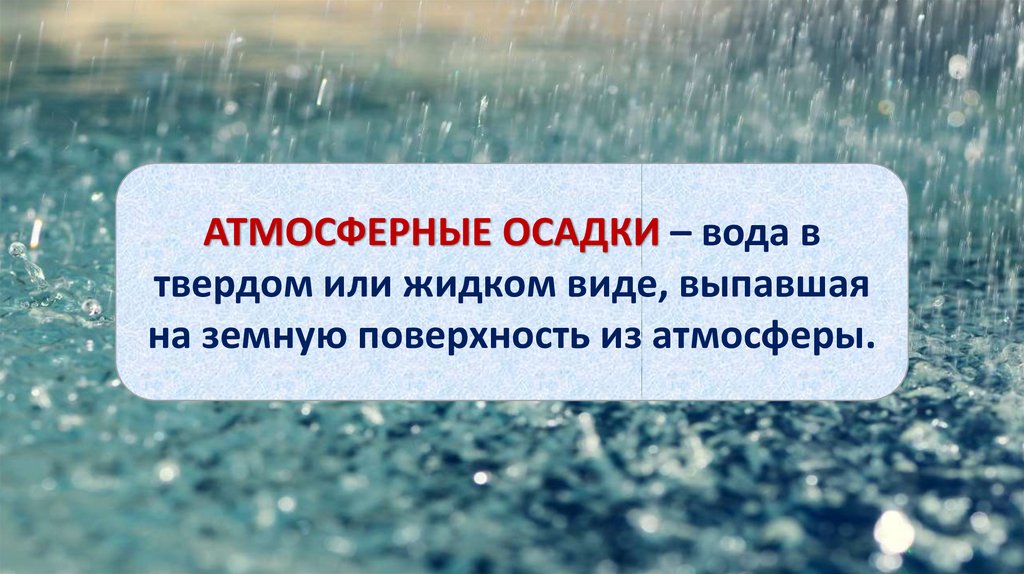 АТМОСФЕРНЫЕ ОСАДКИ – вода втвердом или жидком виде, выпавшая