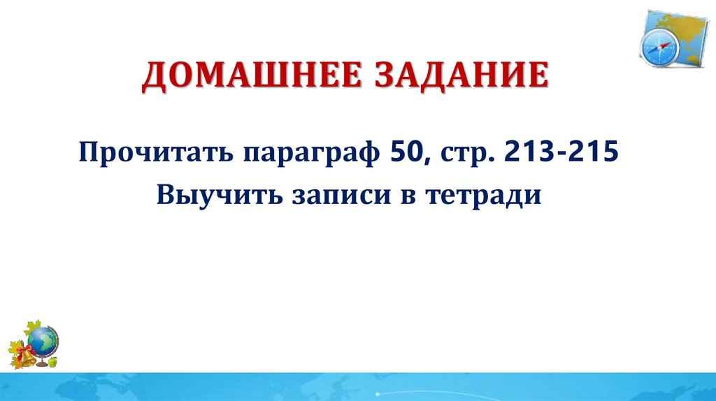 ДОМАШНЕЕ ЗАДАНИЕПрочитать параграф 50, стр. 213-215