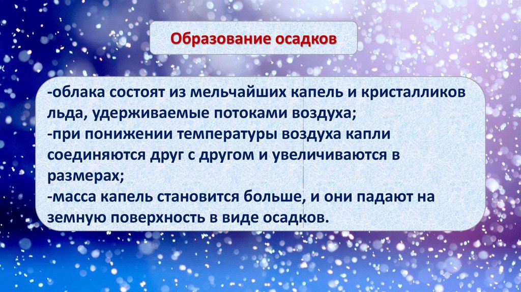 Образование осадков-облака состоят из мельчайших капель и кристалликов