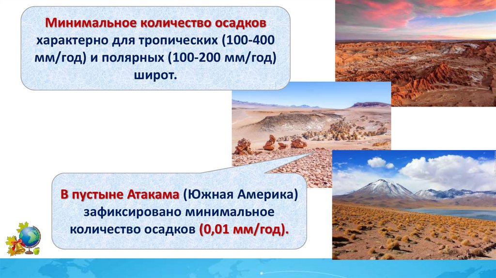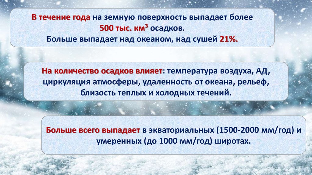 В течение года на земную поверхность выпадает более500 тыс. км³ осадков.