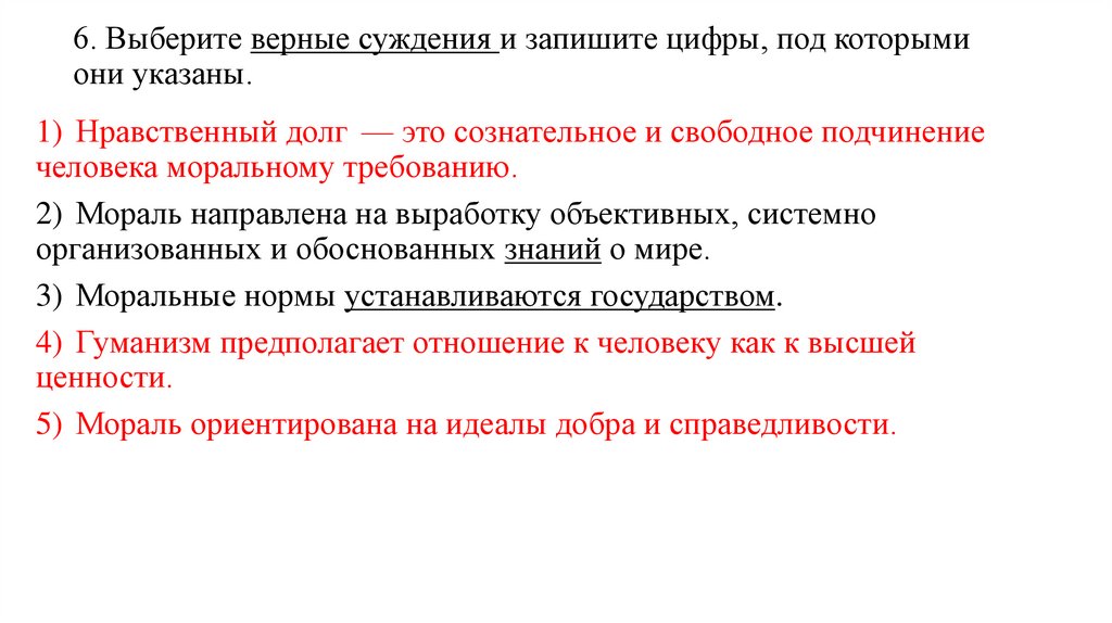 6. Выберите верные суждения и запишите цифры, под которымиони указаны.