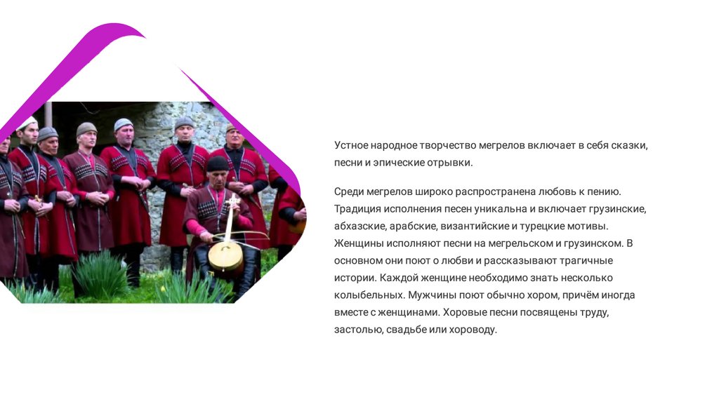 Среди мегрелов широко распространена любовь к пению.