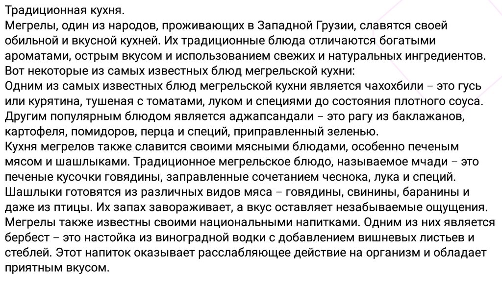 кухня мегрелов богата разнообразием вкусов и ароматов. Она