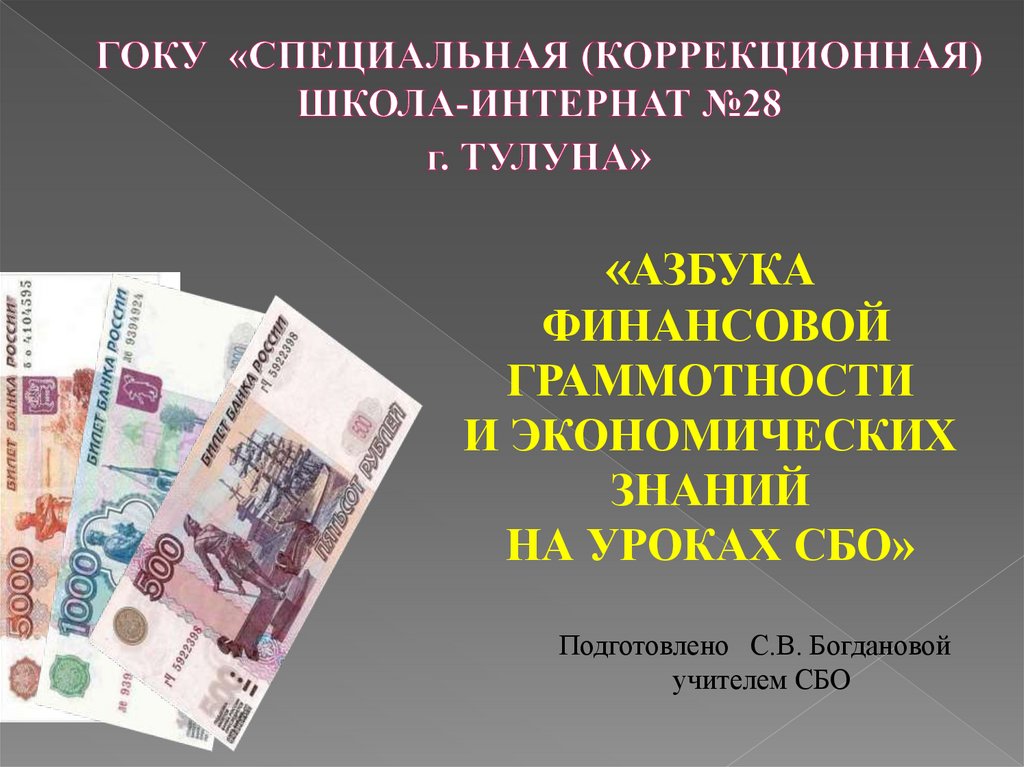 Азбука финансовой грамотности и экономических знаний на уроках СБО