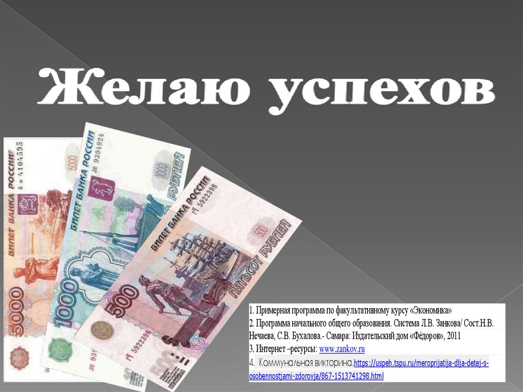 1. Примерная программа по факультативному курсу «Экономика»2. Программа начального общего образования. Система Л.В. Занкова/ Сост.Н.В.