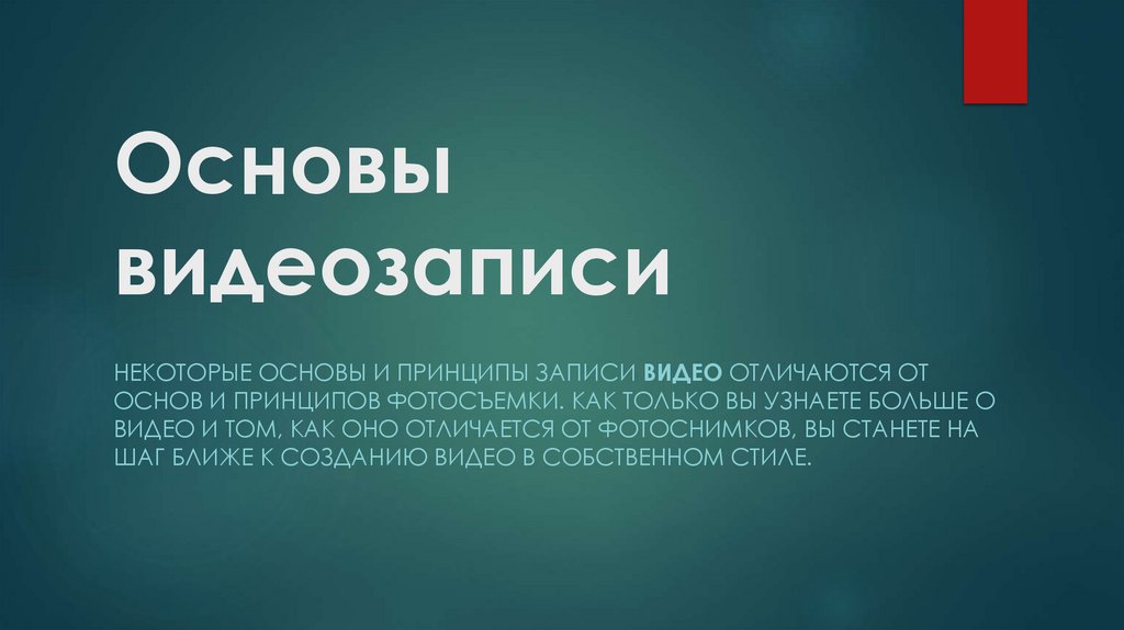 НЕКОТОРЫЕ ОСНОВЫ И ПРИНЦИПЫ ЗАПИСИ ВИДЕО ОТЛИЧАЮТСЯ ОТ