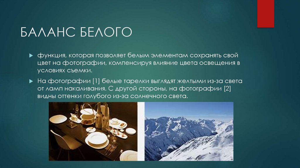 БАЛАНС БЕЛОГОфункция, которая позволяет белым элементам сохранять свой