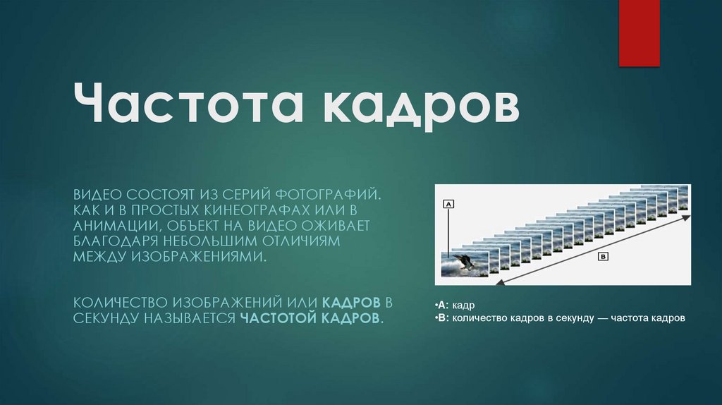 Частота кадровВИДЕО СОСТОЯТ ИЗ СЕРИЙ ФОТОГРАФИЙ.