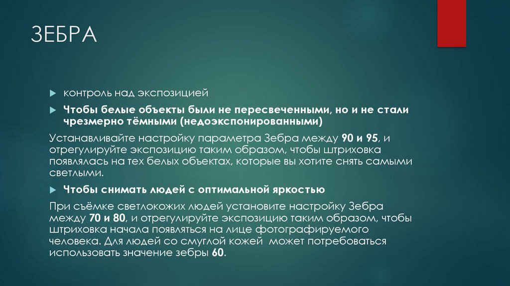 Устанавливайте настройку параметра Зебра между 90 и 95, и