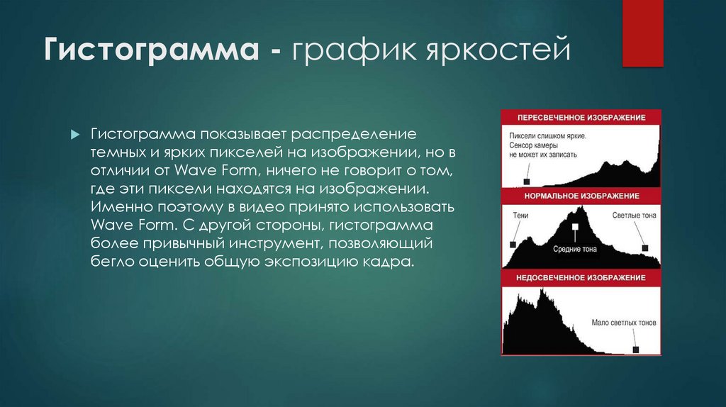 Wave Form - “Форма волны”Суть ее в отображении яркостей изображения в форме волны. Грубо говоря, виден