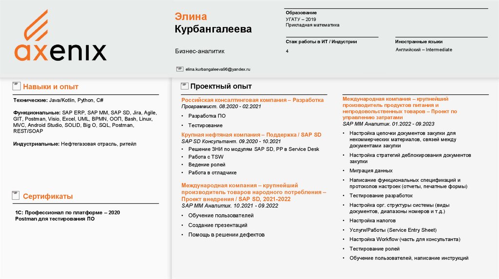 Функциональные: SAP ERP, SAP MM, SAP SD, Jira, Agile,