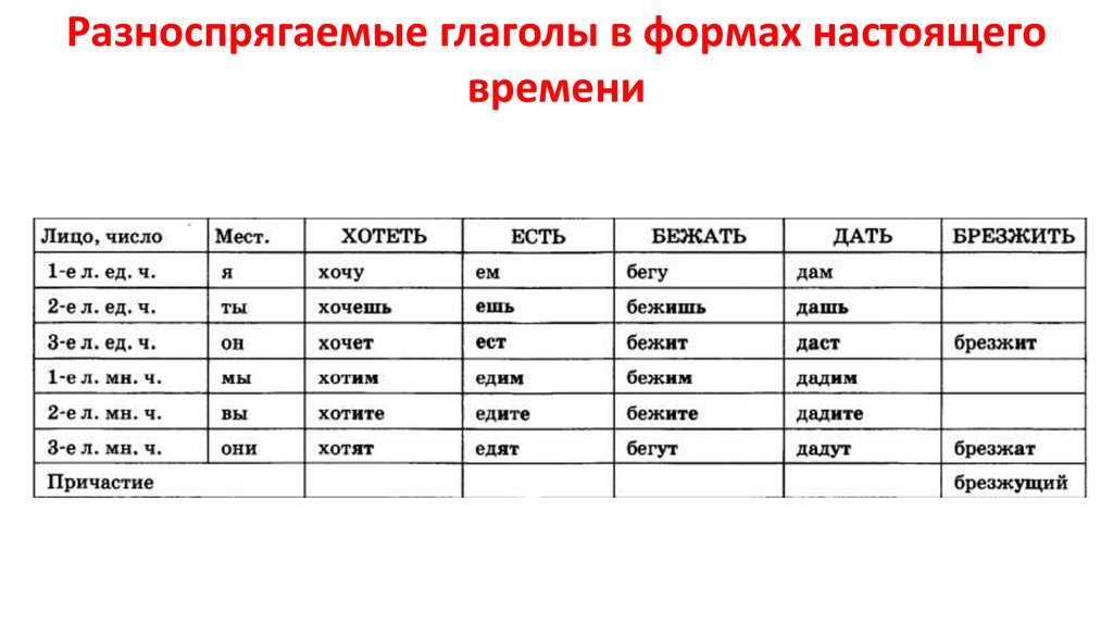 Разноспрягаемые глаголы в формах настоящеговремени