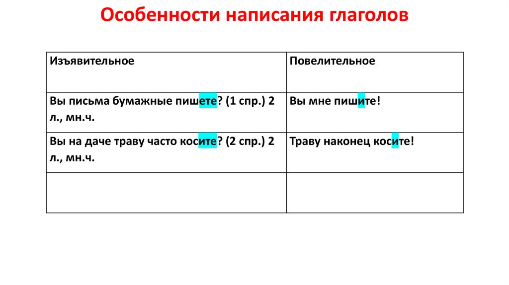 Особенности написания глаголовИзъявительное