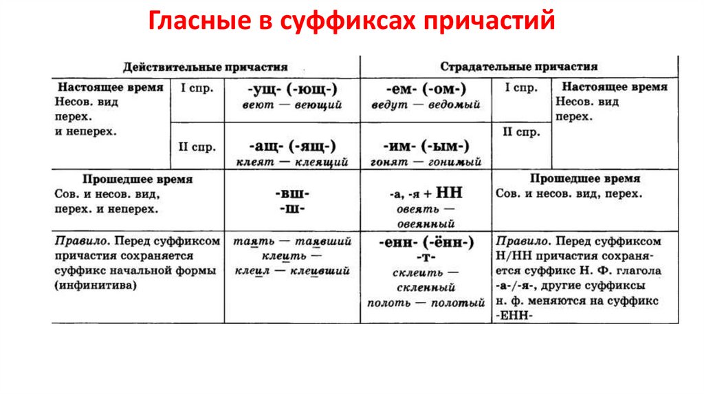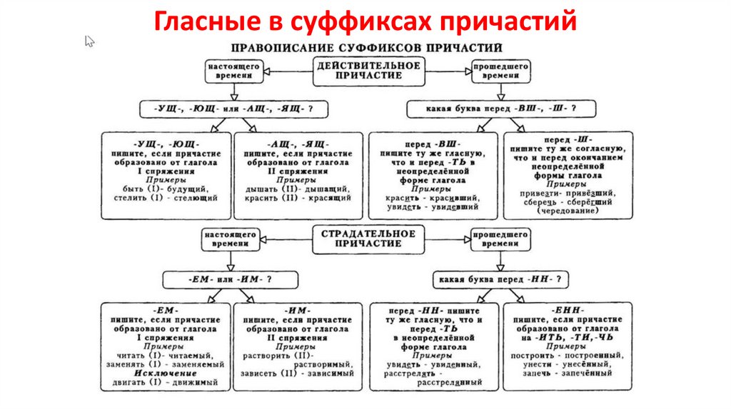 Гласные в суффиксах причастий17.