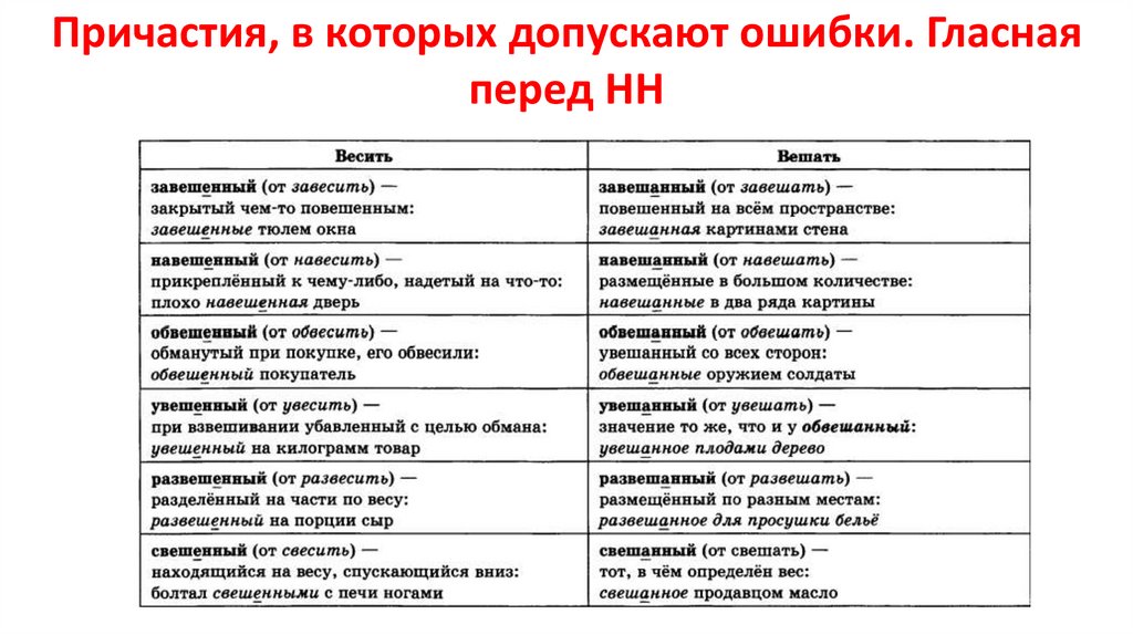 Причастия, в которых допускают ошибки. Гласнаяперед НН