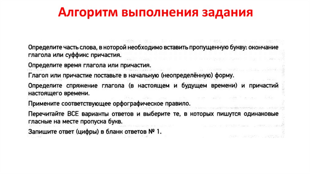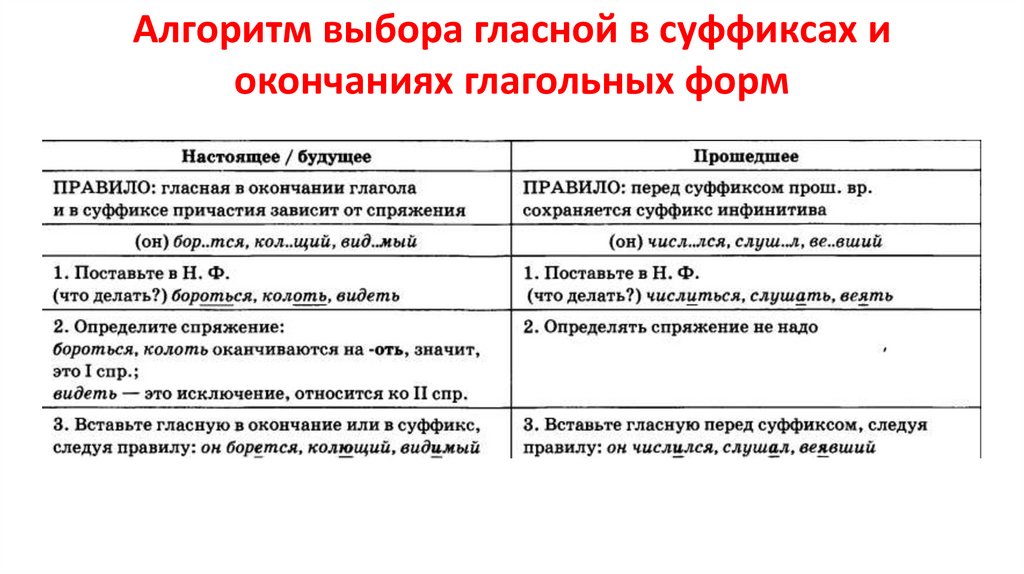 Алгоритм выбора гласной в суффиксах иокончаниях глагольных форм
