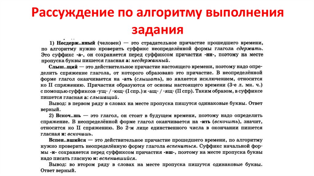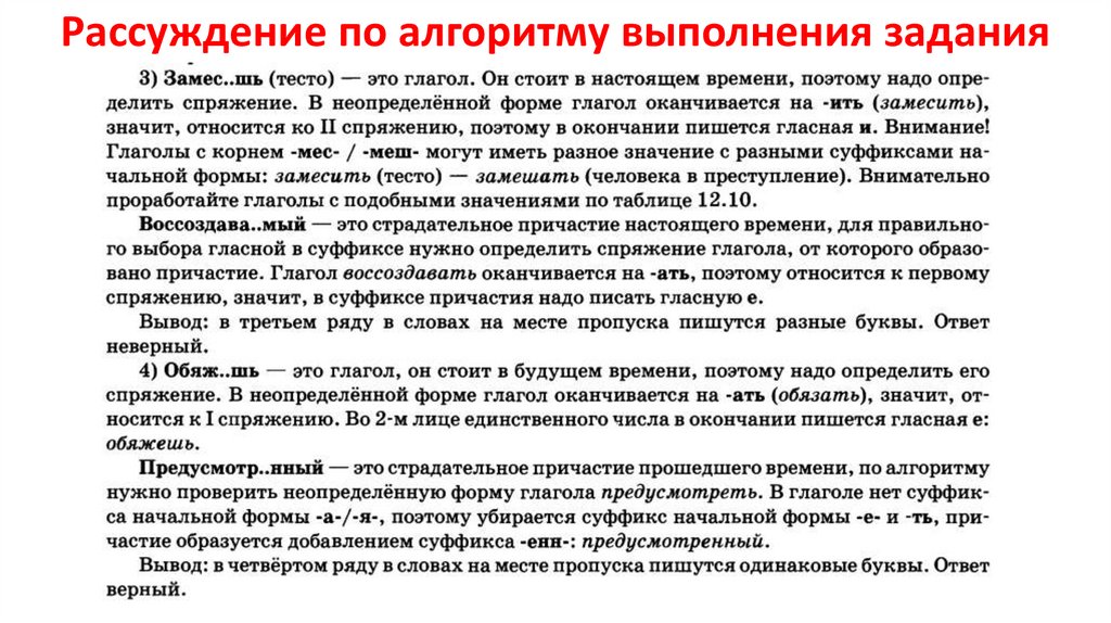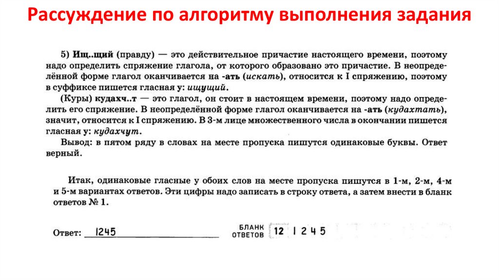Рассуждение по алгоритму выполнениязадания