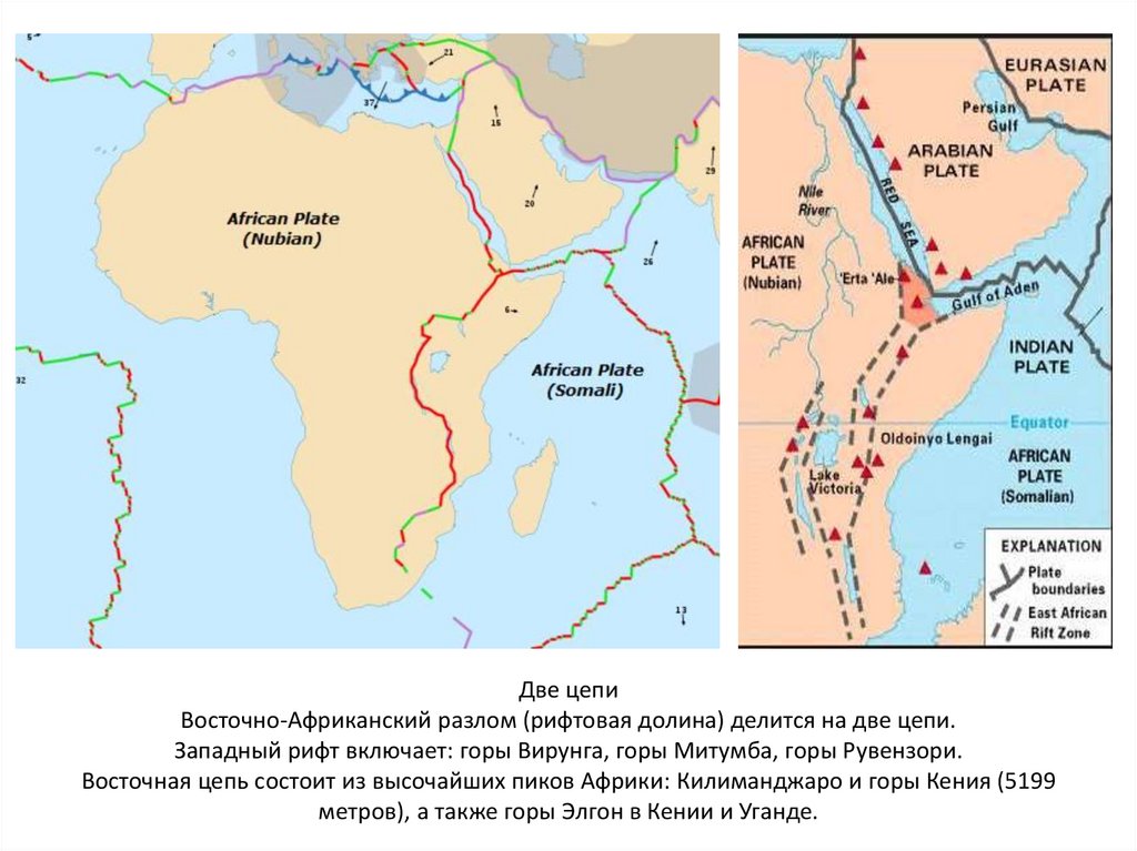 Две цепиВосточно-Африканский разлом (рифтовая долина) делится на две цепи.