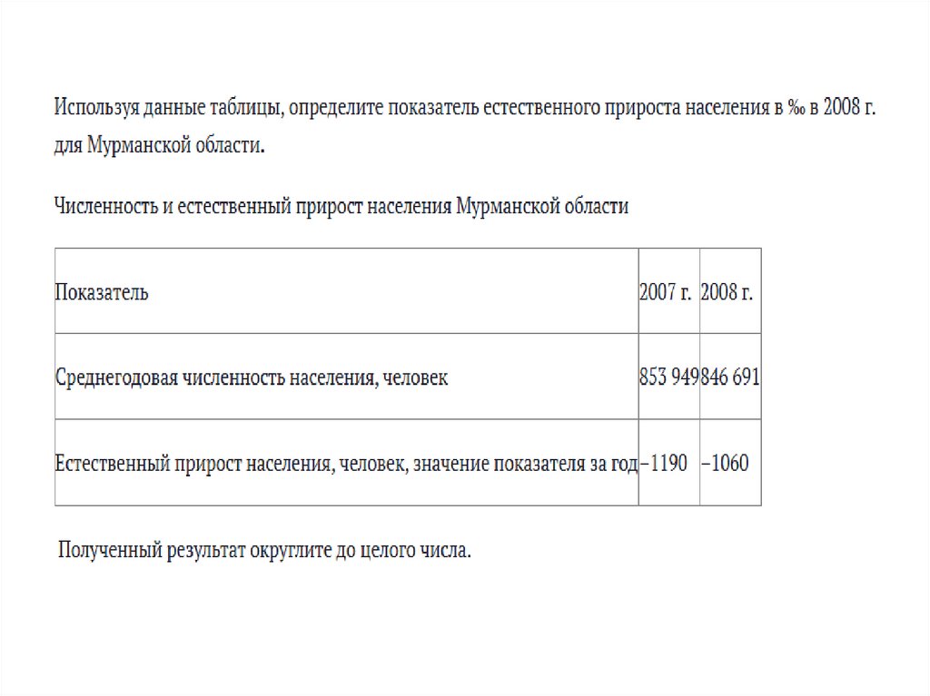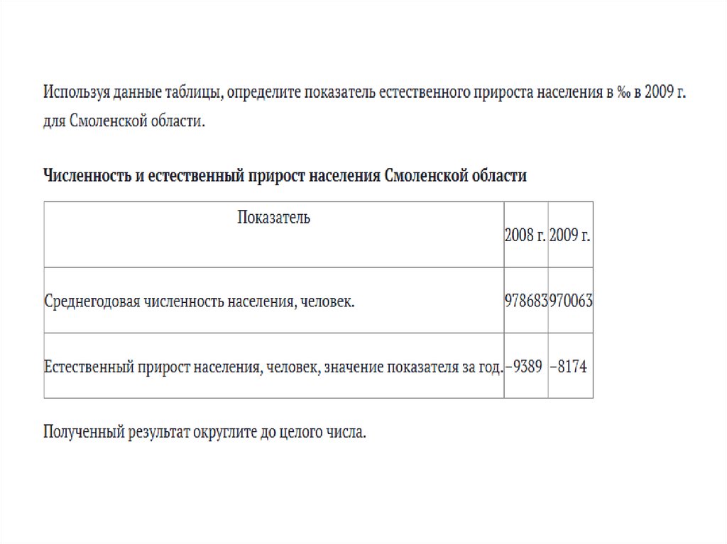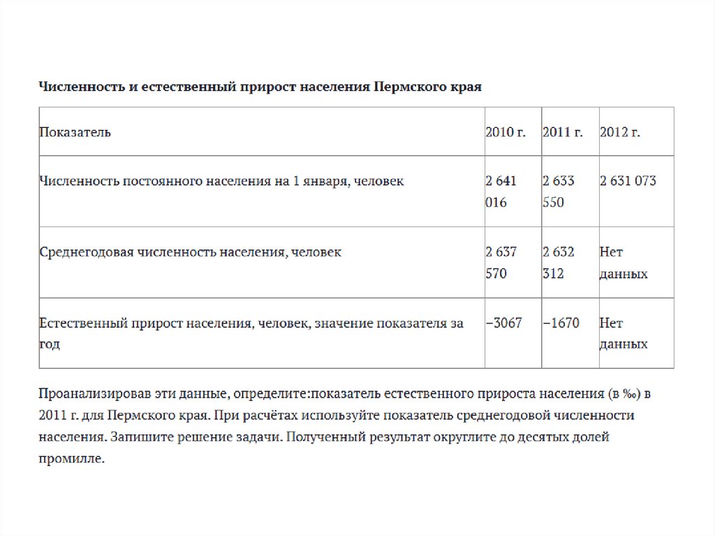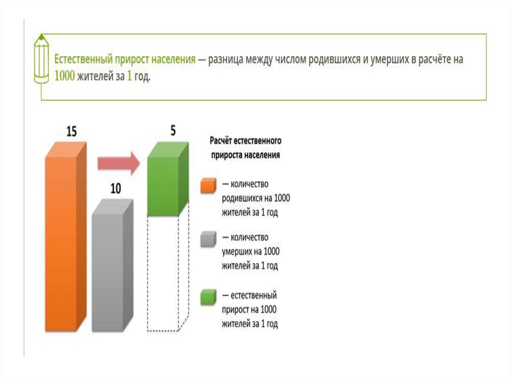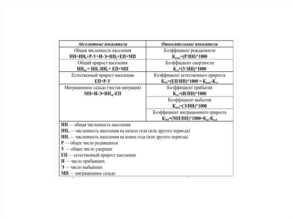 где ПЕП — показатель естественного прироста (‰), Р —рождаемость (чел.), С — смертность (чел.), Н — численность