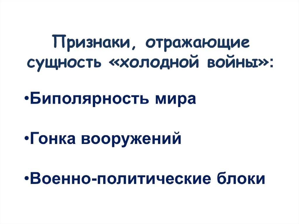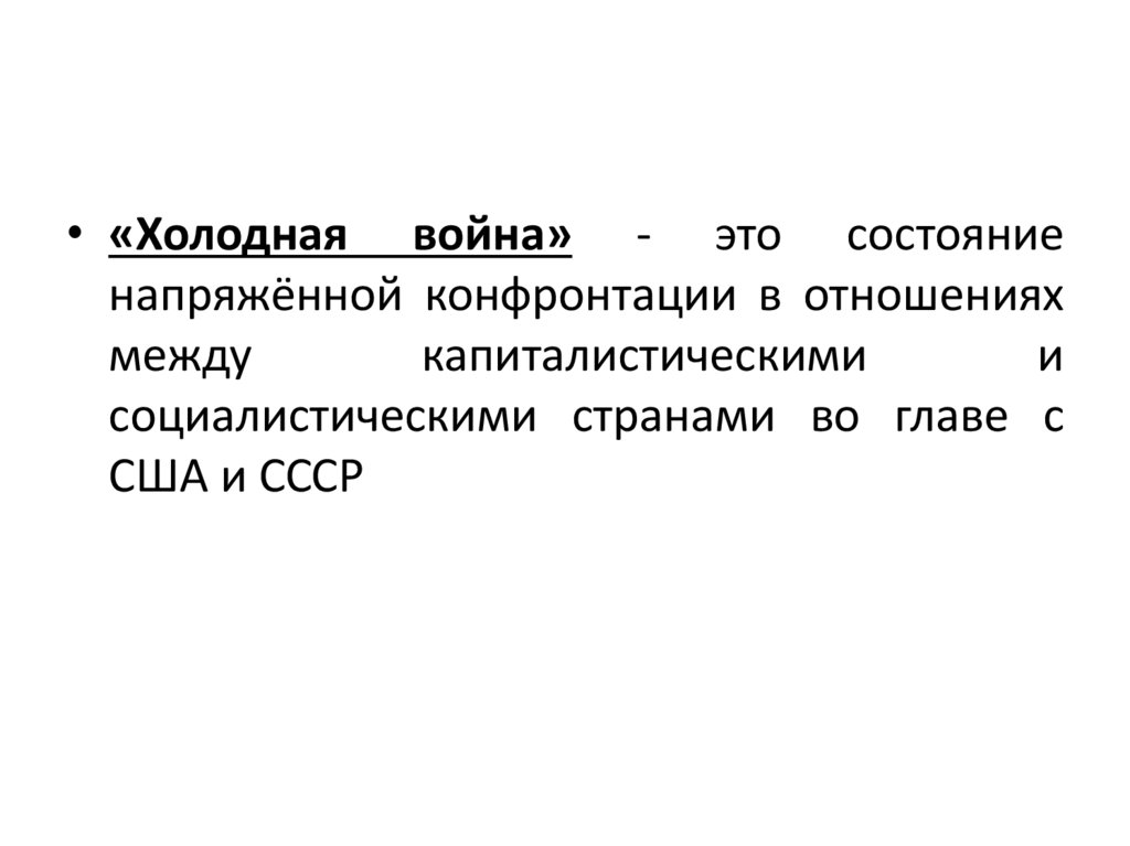 • «Холодная война» - это состояниенапряжённой конфронтации в отношениях
