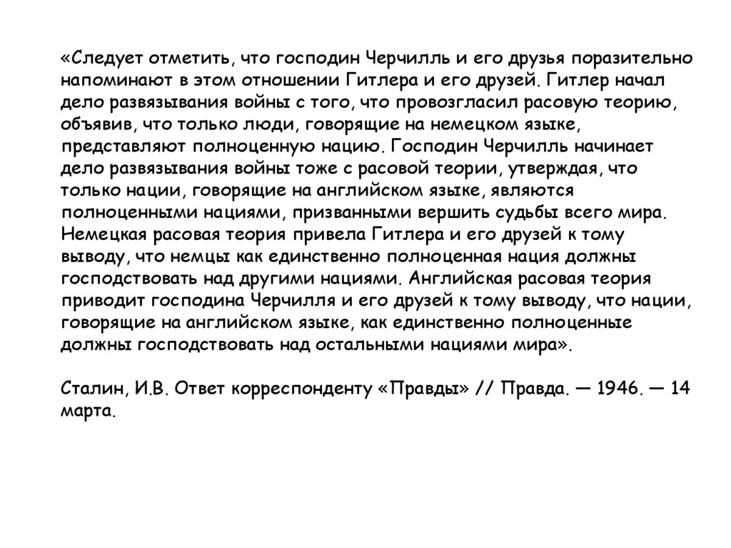 Сталин, И.В. Ответ корреспонденту «Правды» // Правда. — 1946. — 14