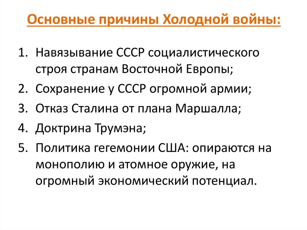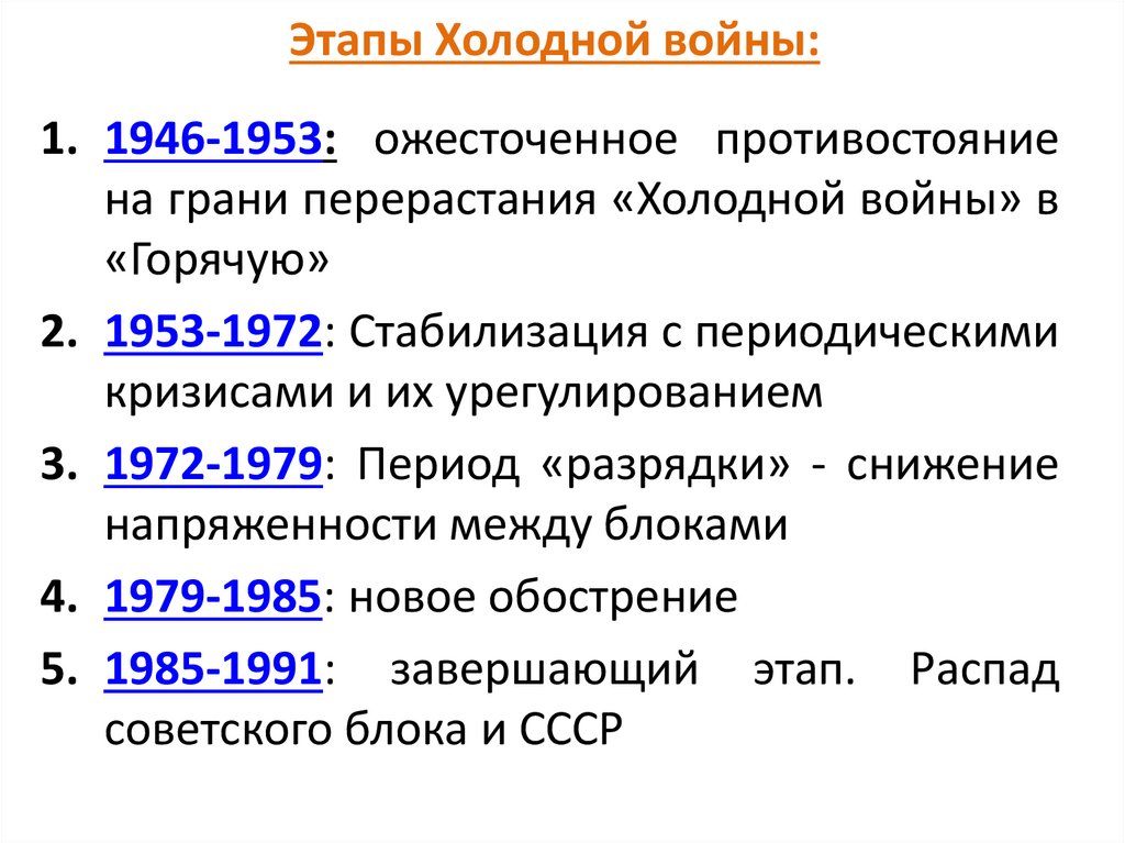 1. Послевоенное устройство мира и «холодная война»