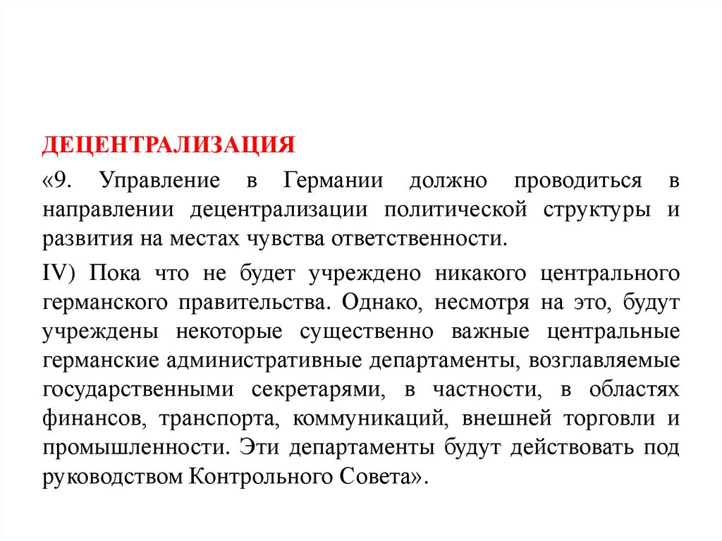 ДЕЦЕНТРАЛИЗАЦИЯ«9. Управление в Германии должно проводиться в
