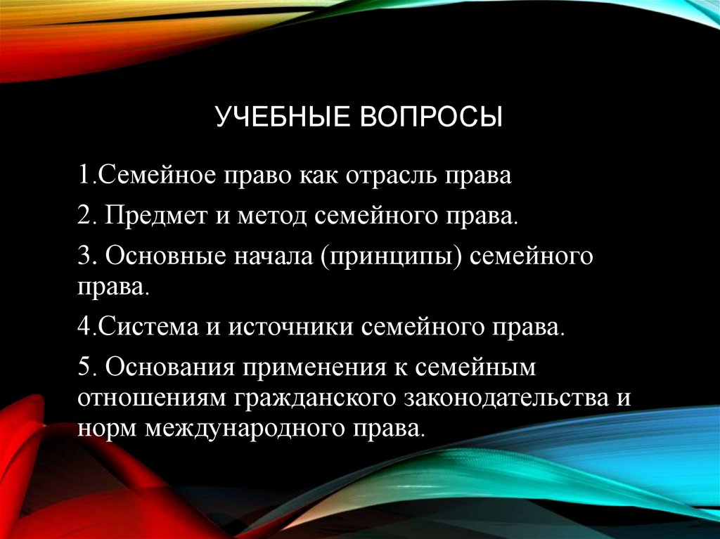 УЧЕБНЫЕ ВОПРОСЫ1.Семейное право как отрасль права