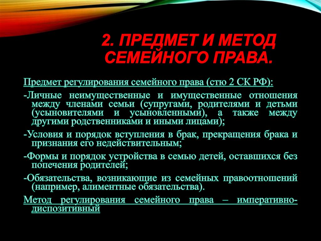 2. Предмет и метод семейного права.