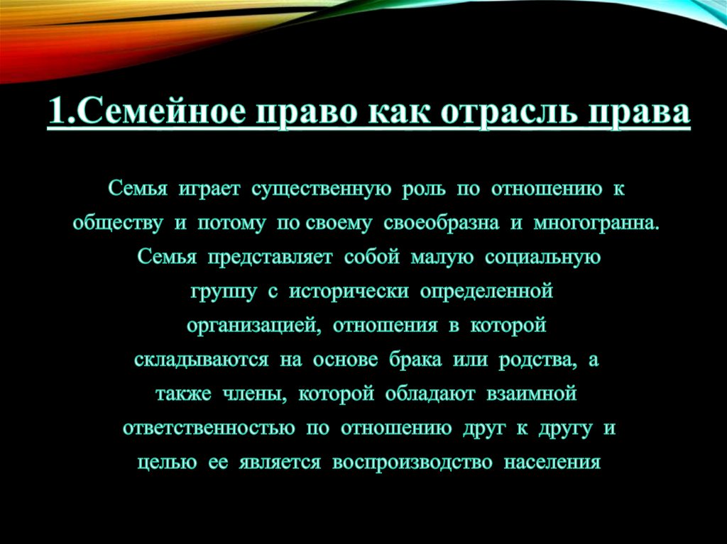 Понятие семейного права. Тема 1