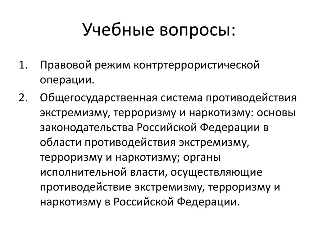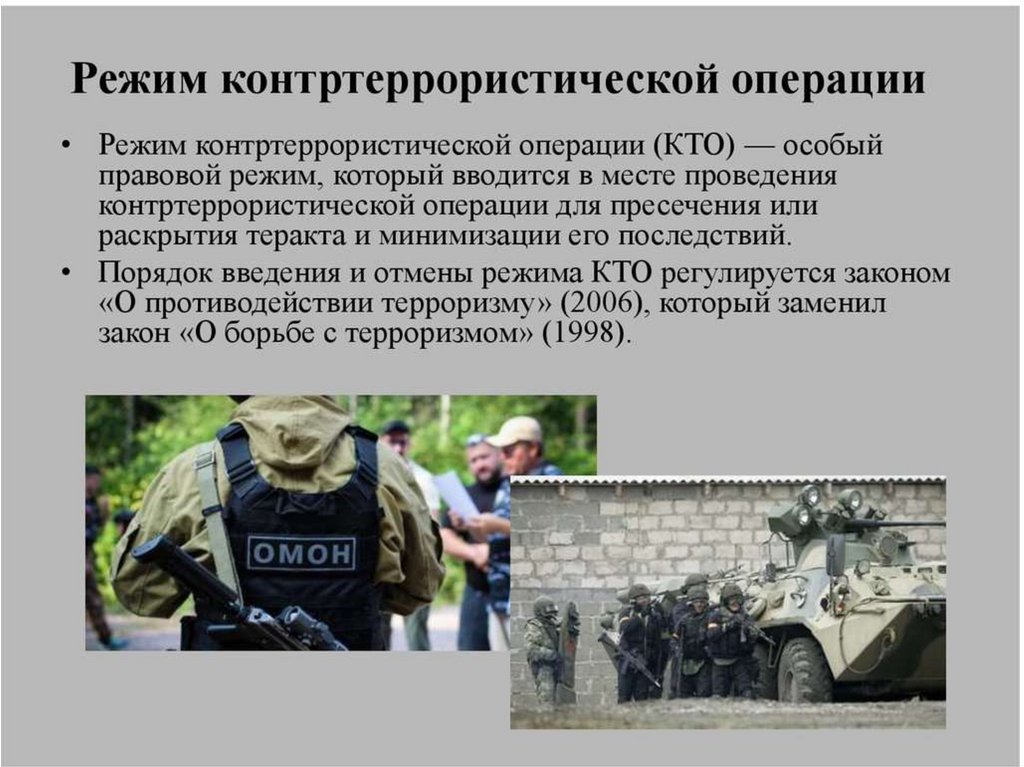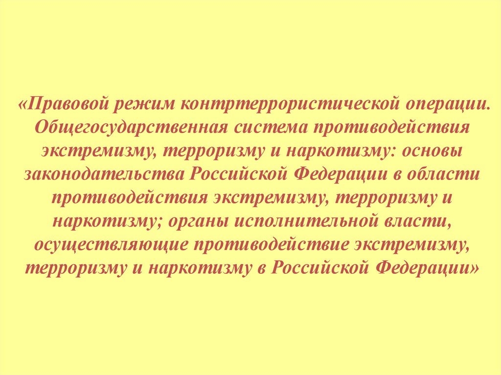 «Правовой режим контртеррористической операции.Общегосударственная система противодействия