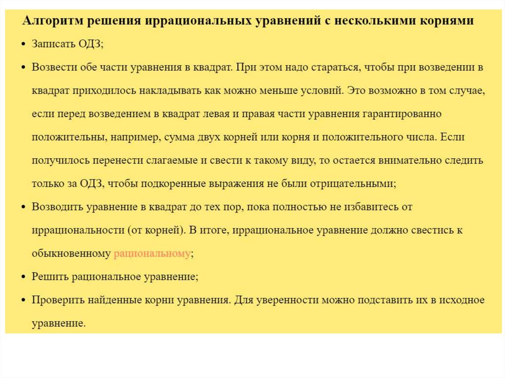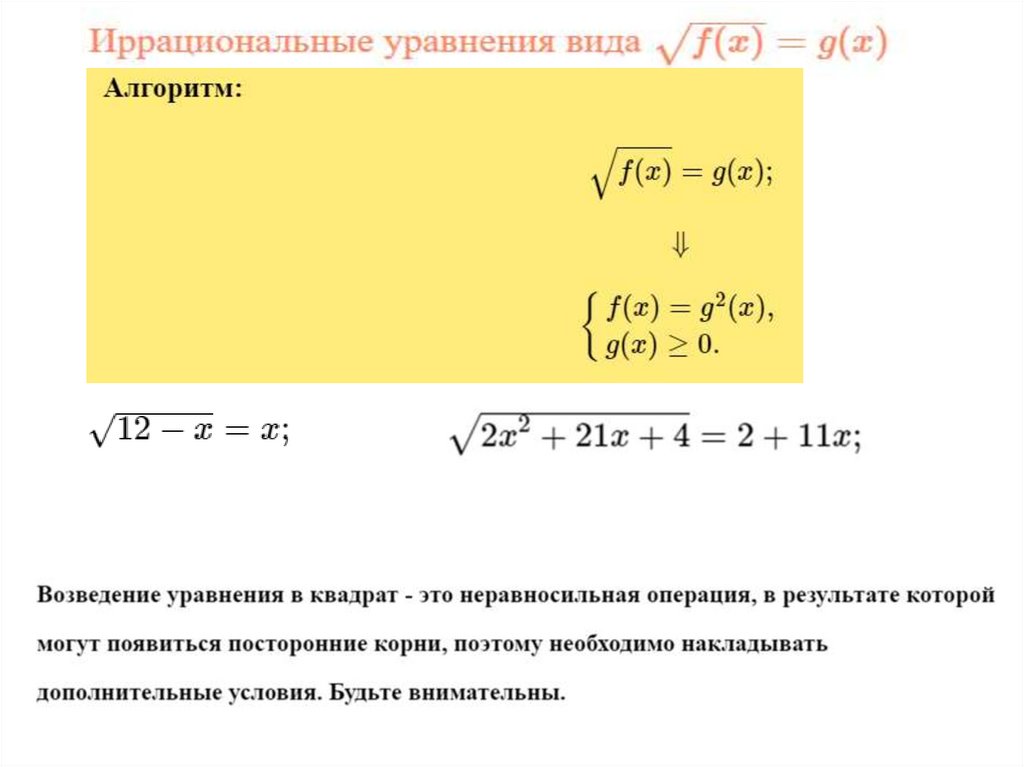 для решения требуется несколько раз возводить уравнение в квадрат и при этом