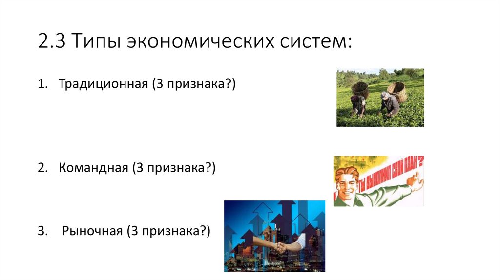 2.3 Типы экономических систем:1. Традиционная (3 признака?)