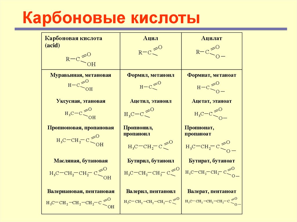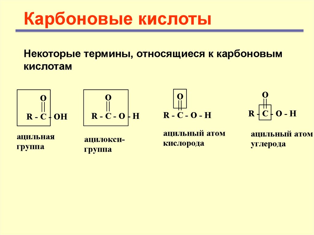 Карбоновые кислотыНекоторые термины, относящиеся к карбоновым
