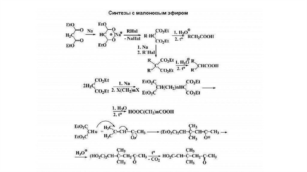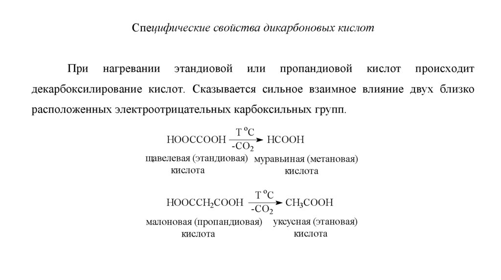 декарбоксилирование кислот. Сказывается сильное взаимное влияние двух близко