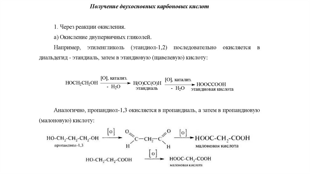 Получение двухосновных карбоновых кислот1. Через реакции окисления.