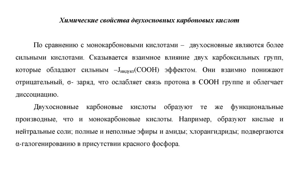 Химические свойства двухосновных карбоновых кислотПо сравнению с монокарбоновыми кислотами – двухосновные являются более