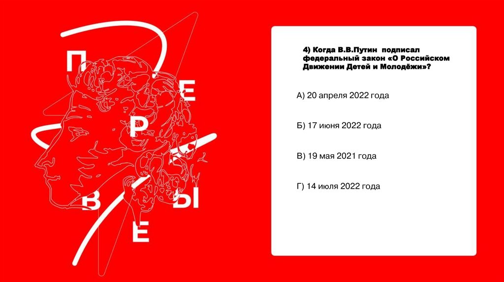 4) Когда В.В.Путин подписалфедеральный закон «О Российском