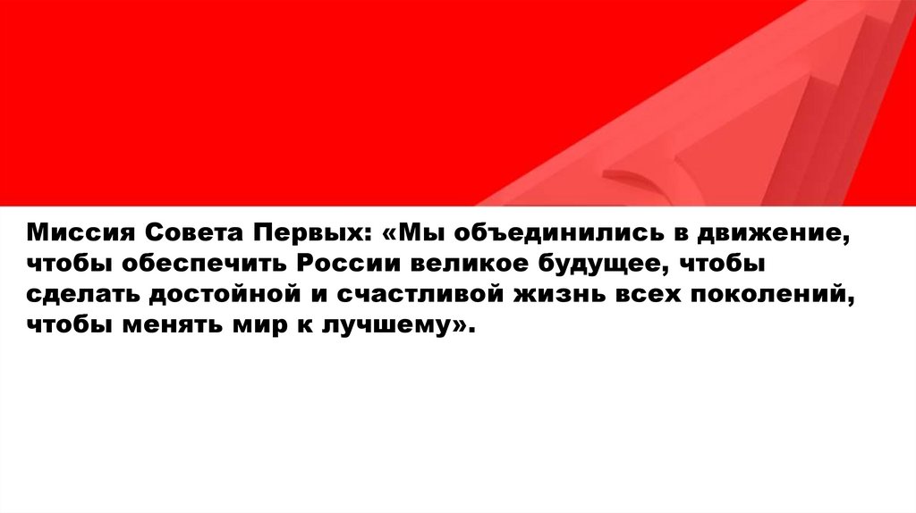Миссия Совета Первых: «Мы объединились в движение,чтобы обеспечить России великое будущее, чтобы
