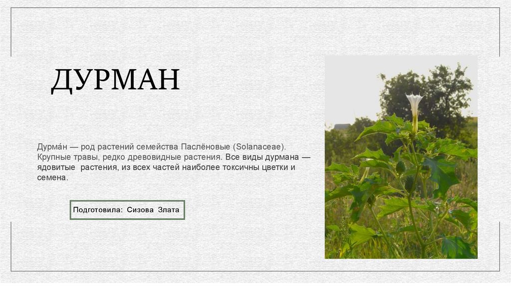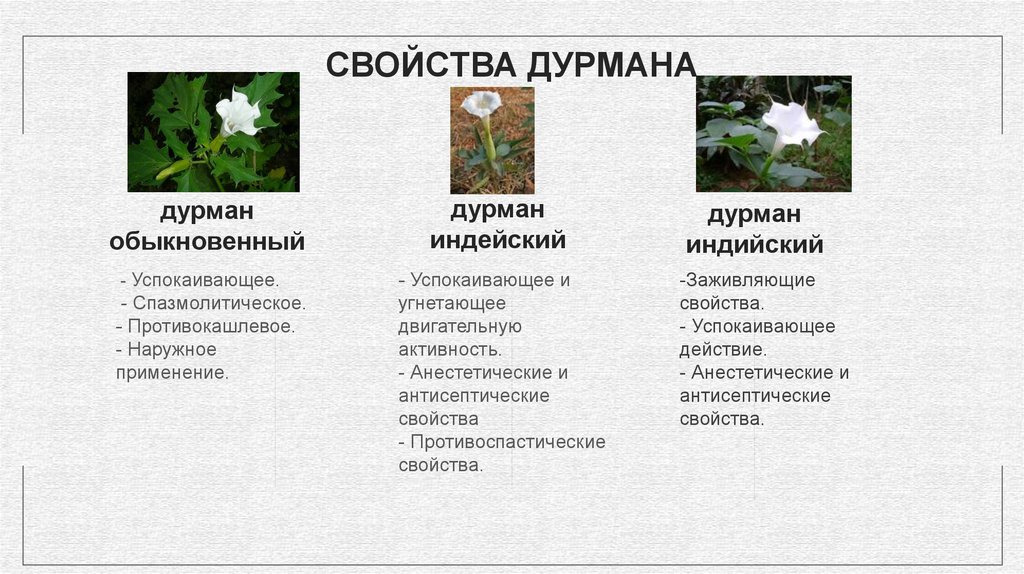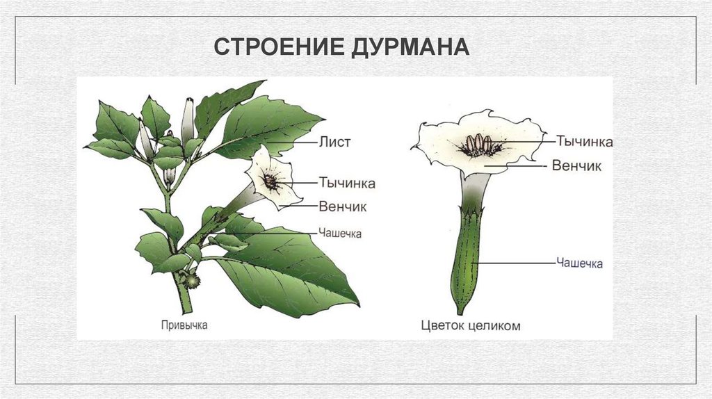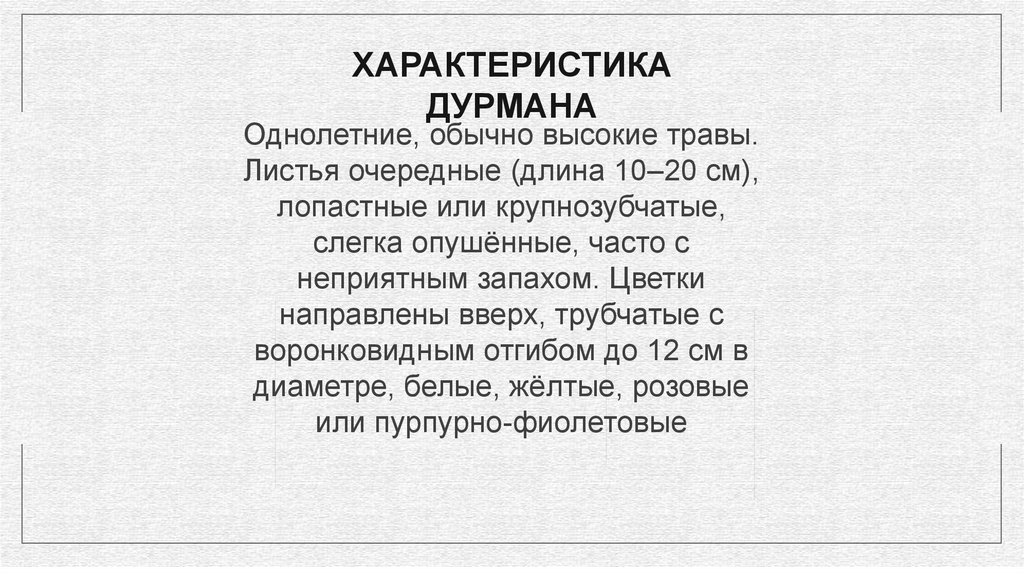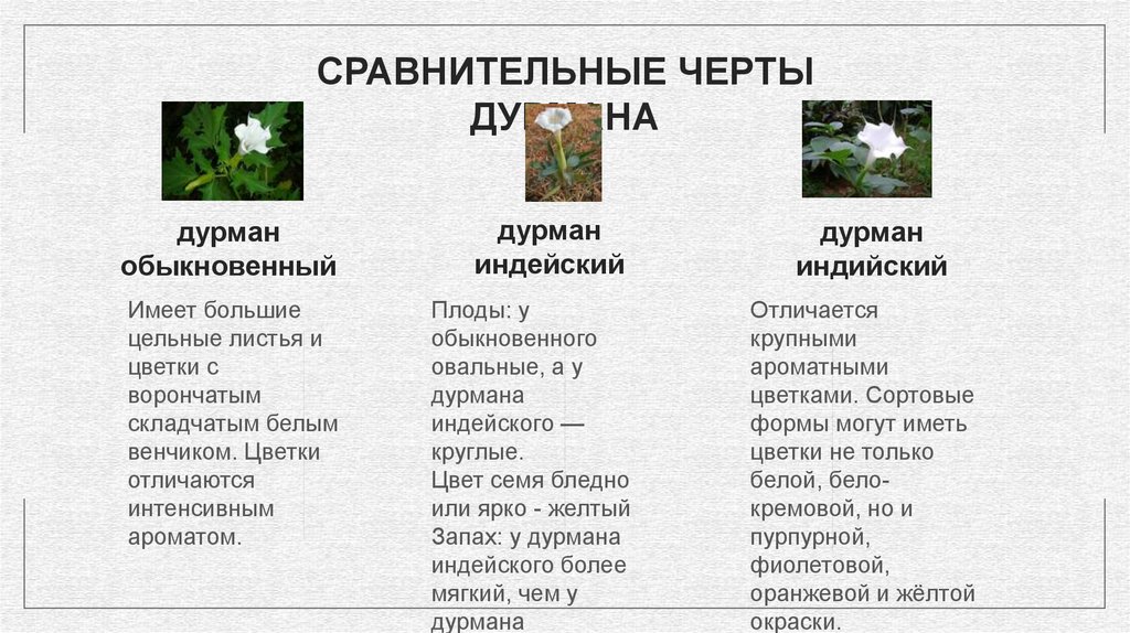 Крупные травы, редко древовидные растения. Все виды дурмана —