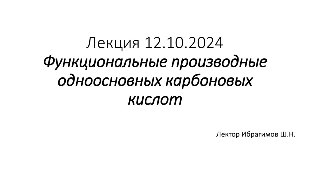 Функциональные производные одноосновных карбоновых кислот. Лекция