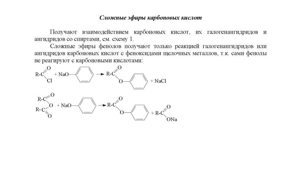 Сложные эфиры фенолов получают только реакцией галогенангидридов или