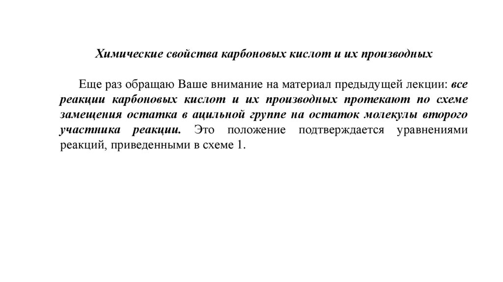 Химические свойства карбоновых кислот и их производныхЕще раз обращаю Ваше внимание на материал предыдущей лекции: все