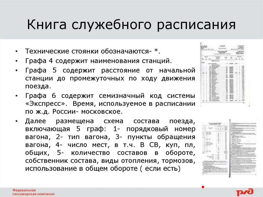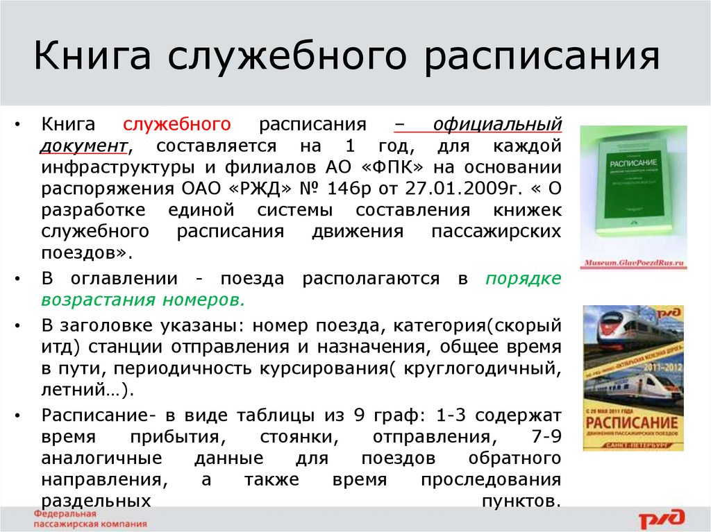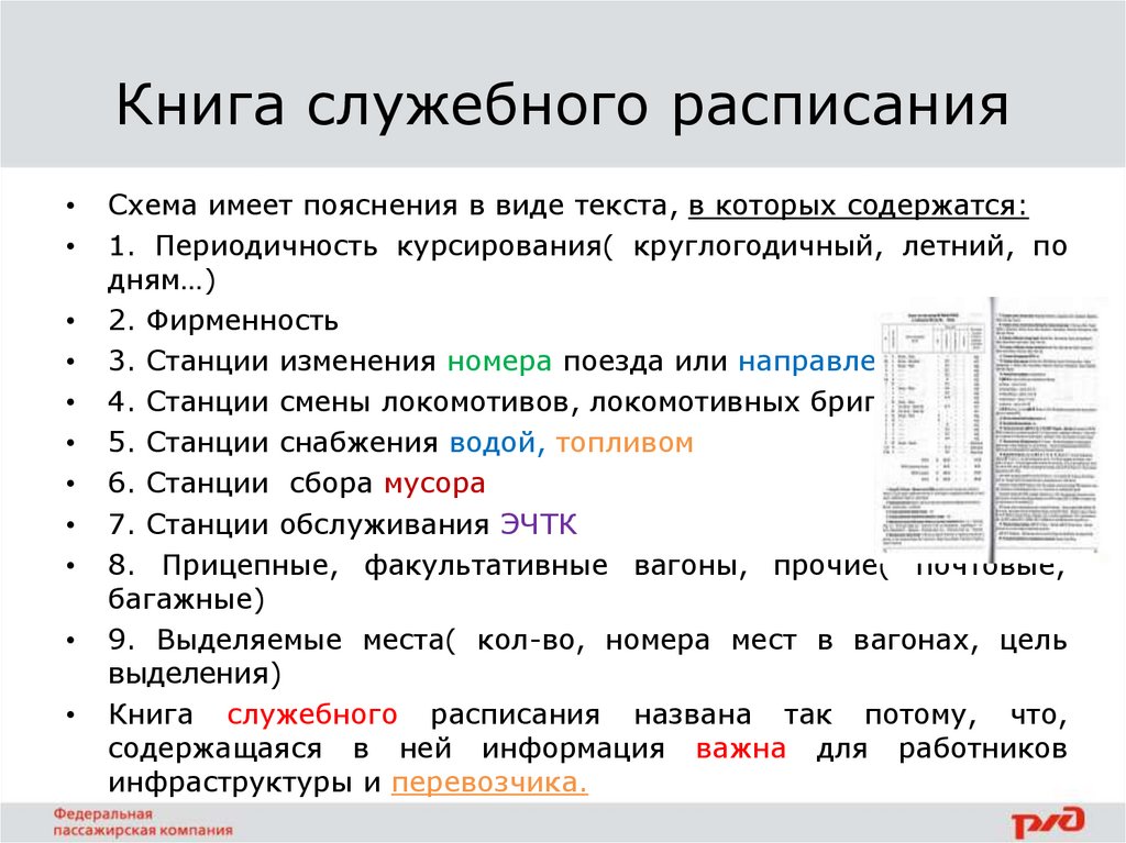 Книга служебного расписанияСхема имеет пояснения в виде текста, в которых содержатся: